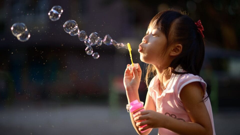 - Builds Vocabulary: Bubble play introduces new words like “blow,” “pop,” “big,” and “small,” expanding vocabulary in a fun, engaging context. Children also learn descriptive language, which can be applied to conversations outside of play, building a stronger language base.