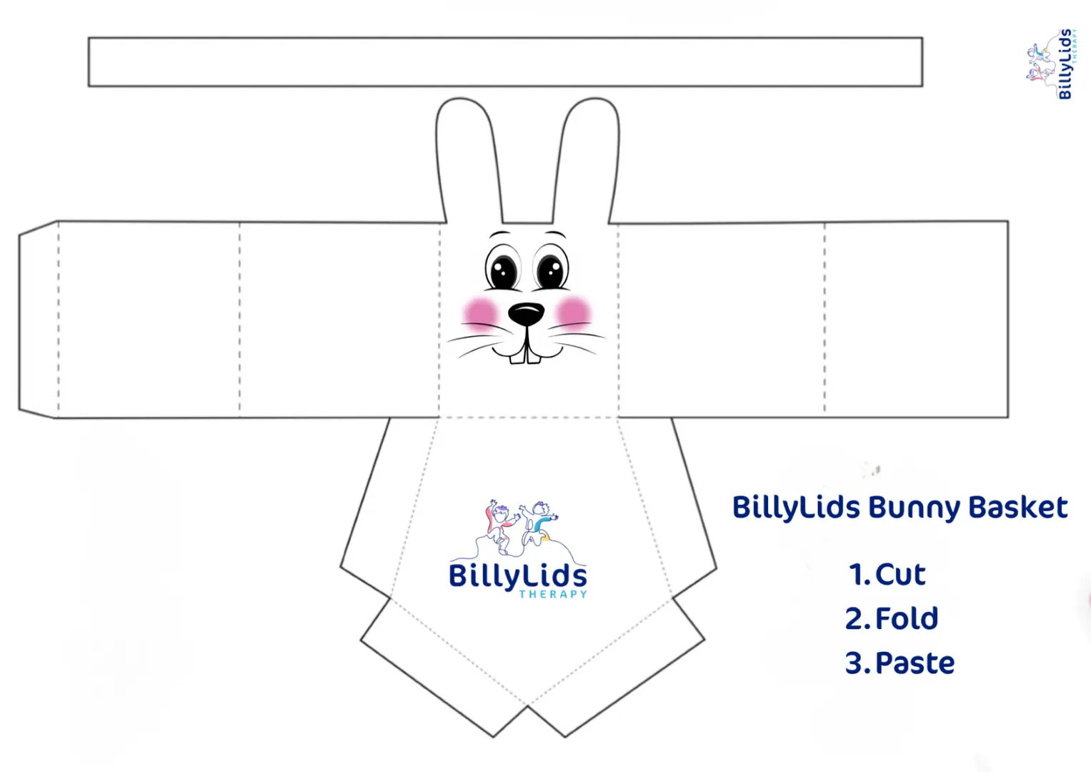 Simply print our BillyLids Bunny Basket template, cut, fold and paste. Depending on your child’s age and developmental needs, you can colour the basket or decorate with ribbon and stickers.