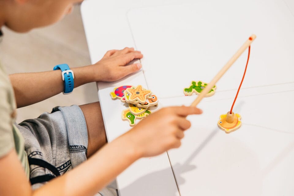 Wooden fishing sets are engaging, hands-on toys designed for children, featuring a magnetic fishing rod and colorful fish pieces with magnets. These sets promote essential developmental skills, such as hand-eye coordination, fine motor skills, and vocabulary building through descriptive play. They also encourage social interaction through turn-taking and improve cognitive skills like following directions and sequencing. The versatility of these toys allows for creative play, making them valuable tools for both parents and therapists to enhance a child’s learning experiences. Popular retailers include Kmart and Target.
